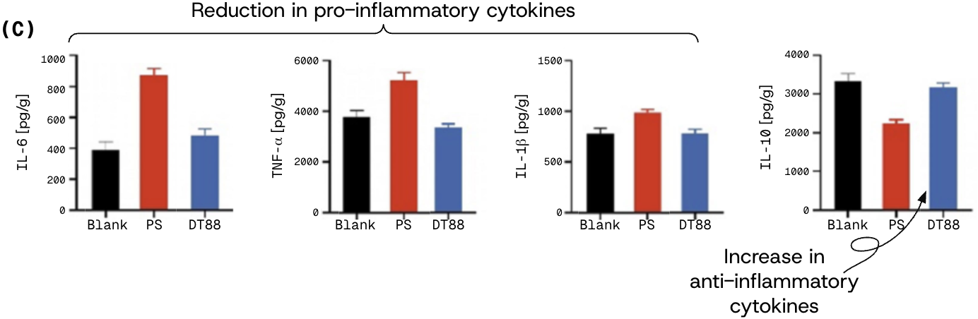 But when the mice were fed DT88, their inflammatory markers started to look more like they did before they were fed plastics, both in the gut and the bloodstream.