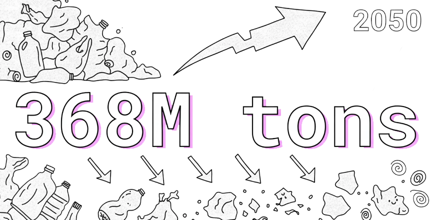 Because it can be used in so many ways, we make tons of it. Literally. About 368M tons were produced in 2019 alone, so much that if we packed all that plastic into train cars, they would stretch around the world more than five times over. And we aren’t even slowing down, instead the amount we produce is projected to skyrocket by 2050 [3].