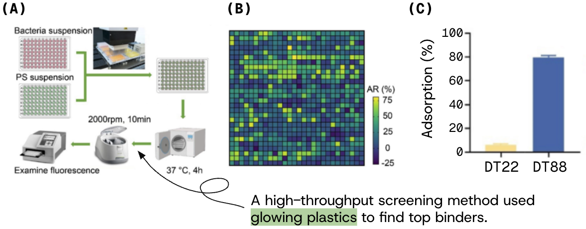 Early attempts to identify these “plastic binding” bacteria used a simple but clever approach. Researchers took tiny polystyrene particles, the same type of plastic found in styrofoam, and tagged them with dyes so they would glow under a microscope. They mixed those glowing plastics with different probiotic bacteria and followed the glowing plastic to see which bacteria were able to stick.